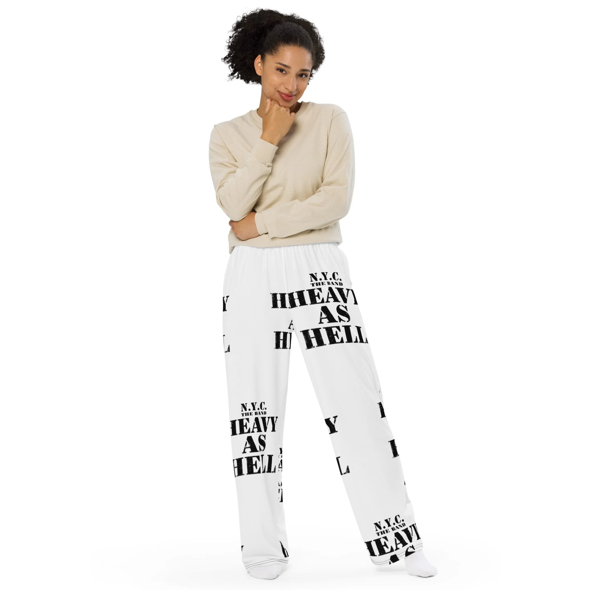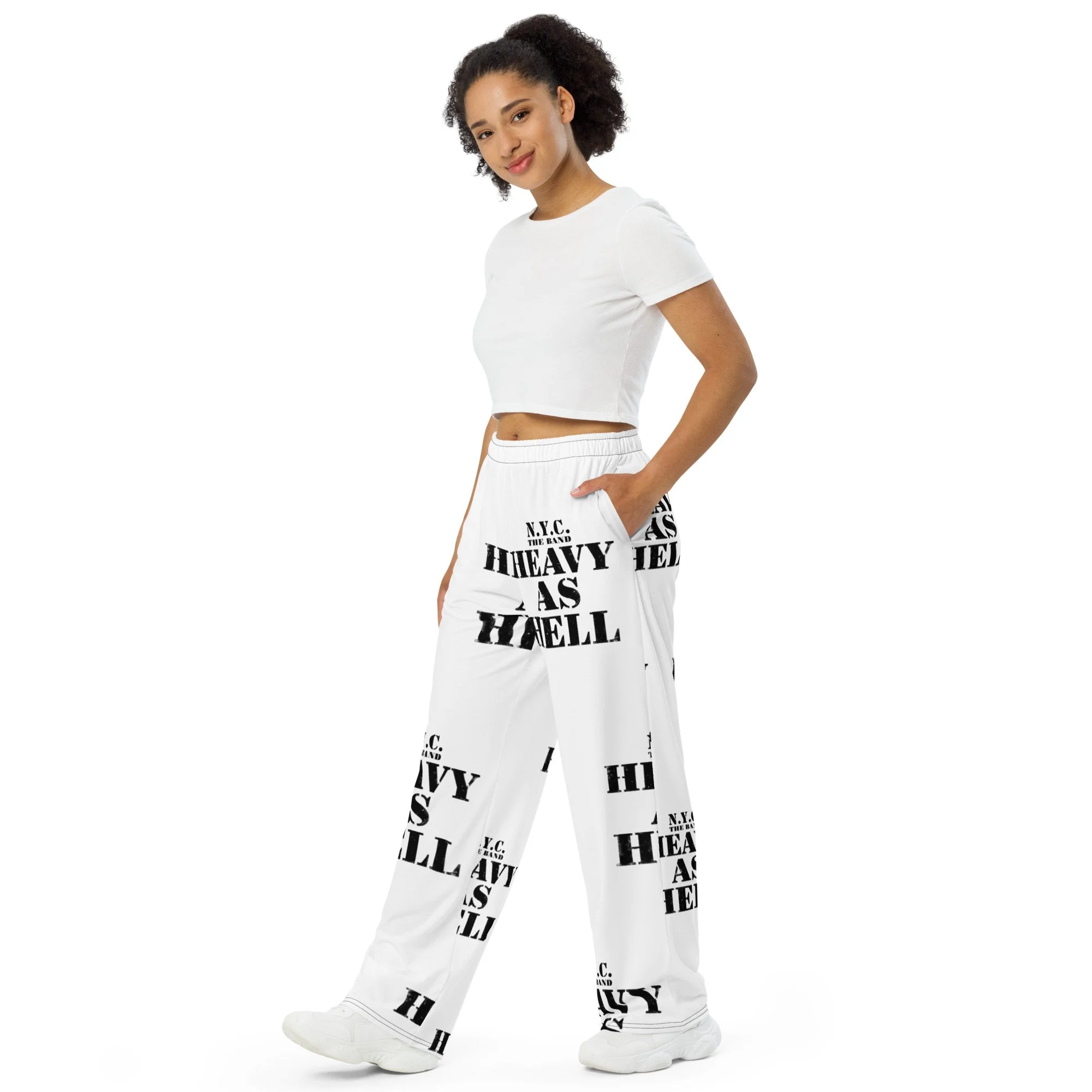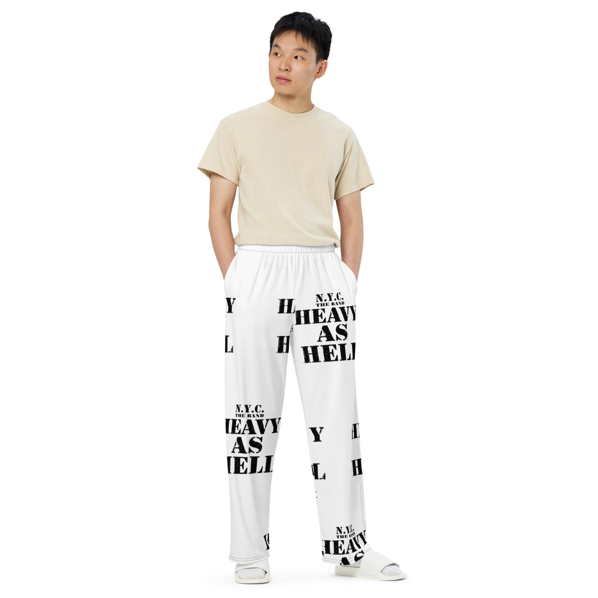 N.Y.C. HaH All-over print unisex wide-leg pants white